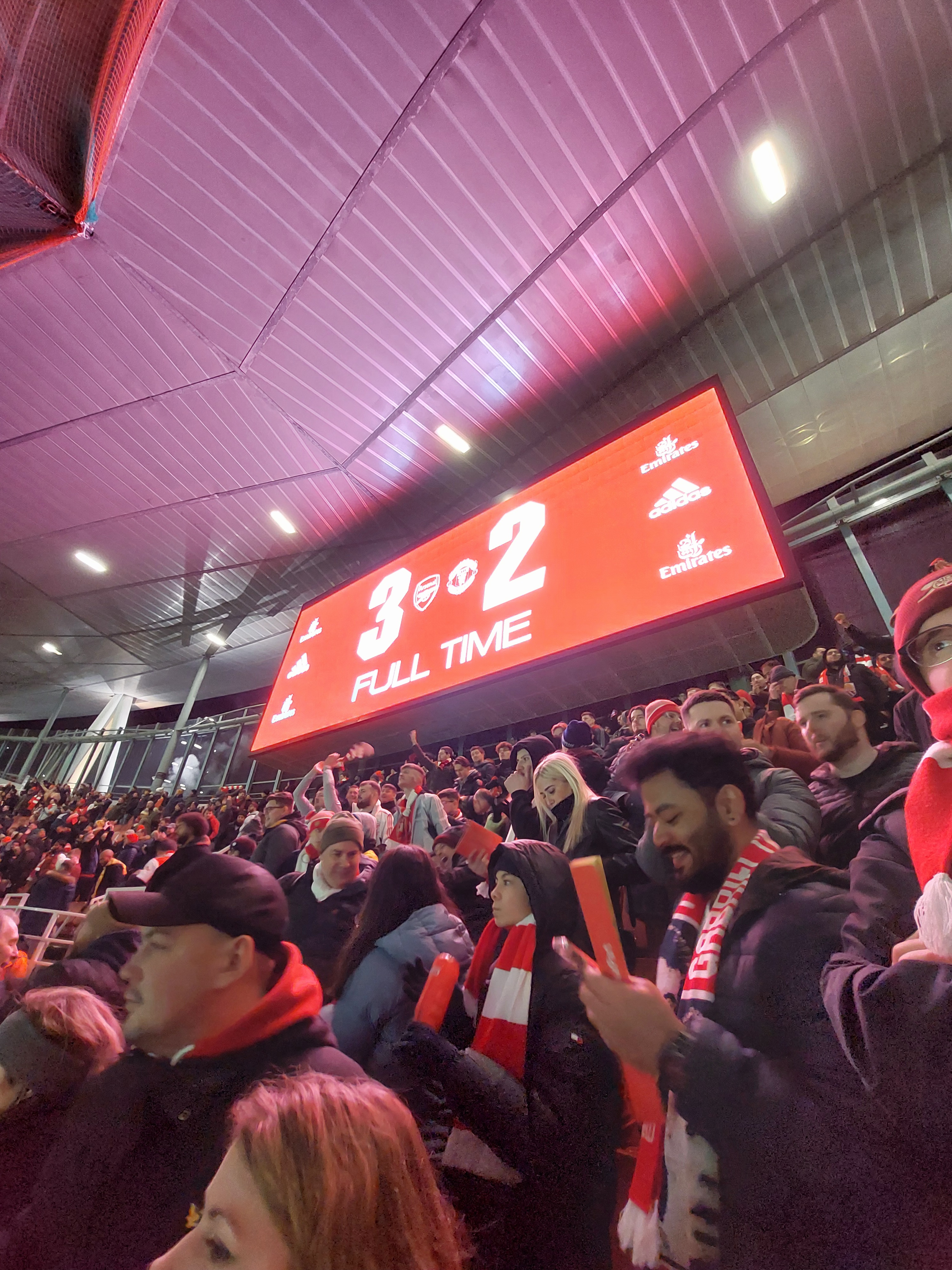 I was greeted by the expected starting XI upon my arrival, and our new signing Leandro Trossard made the bench. An extremely pleasing signing. Most of the seatings were already occupied 30 minutes before the game and the stadium atmosphere, filled with enthusiastic fans was as immersive as it could get. The game was dynamic and high-intensity, fast paced and frenetic. It was actually hilarious to see Mikel Arteta picked up a yellow card for his reaction to a foul on Saka. Even at 1-1, I was definitely still hopeful on a comeback win based how our team is tilting against Man Utd for most part of the game.