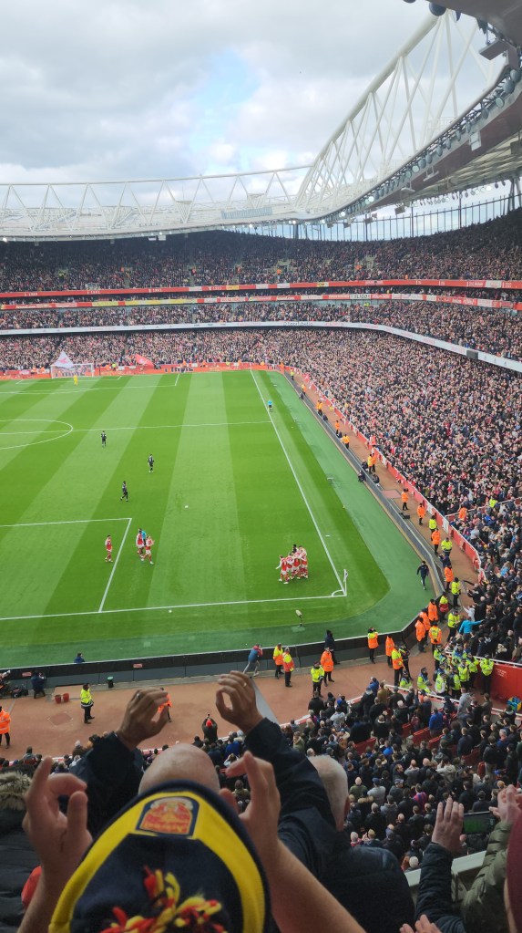 The Crystal Palace game was such a contrast – brilliant weather, dominant performance and as Amy Lawrence mentioned – continuous chanting in support of Patrick Viera. The atmosphere felt a lot ‘stronger’ in a way – it’s as if everyone in the stadium subconsciously wants the league title a lot more than the Europa League. Where we were seated – we also had a bit of smoke come our way from the away fans’ flares (another new experience) but we had superb views of the first 2 goals too from Saka and Martinelli. The first goal really sparked crazy celebrations, it’s as if we all knew that the game was more or less ours already! Aside from the win, when watching the team live, a few players stood out – Ben White and Xhaka for their pure athleticism; they looked really strong and aggressive the whole game, and also Martin Odegaard. Our captain is clearly super skillful, but also obvious how much ground he covers and to follow it up with his magic in the final third is really outstanding (Chapeau!)