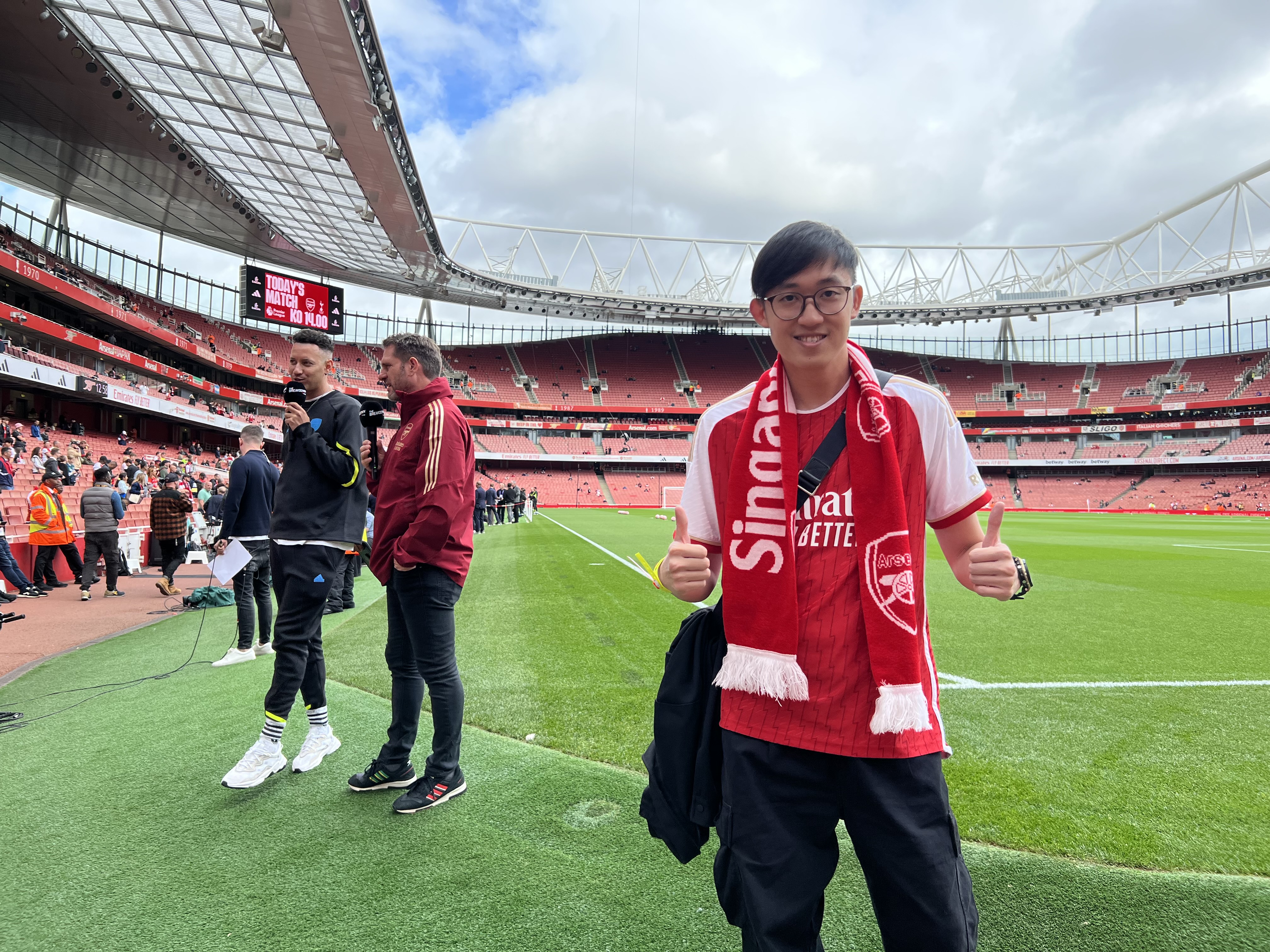 On top of that, I’m also happy to represent Arsenal Singapore Supporters Club to do a couple of interviews pitchside for Arsenal TV as well as the pre-match programme. This gave me a front row ticket to watch the players warm up and look out for legends like Bobby Pires and BFG Per Mertesacker at the ground.