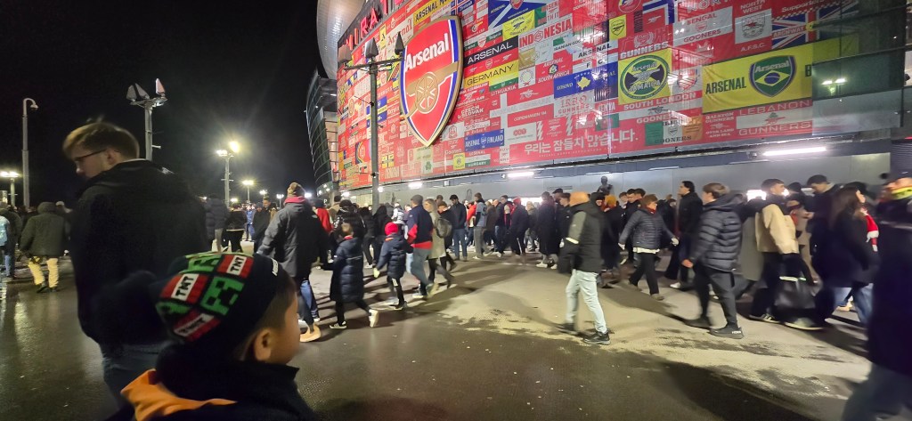 The walk from Arsenal station to the Emirates was fantastic, soaking up the matchday vibes. Finally getting to our seats after security checks and scanning our tickets, we were surrounded by fellow Gooners from everywhere in the world. Just amazing!