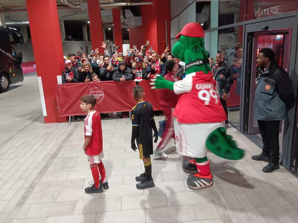 It is always a privilege and thrill to head to London and especially North London to watch The Arsenal. AFC provided exclusive passes for the four Singapore Gooners to welcome the team as they arrived at the Emirates Stadium on the day of the ManU match (best passes that money can’t buy!) There we were, Gunnersaurus and almost 100 other Gooners cheering the team as they hopped off the team bus.
